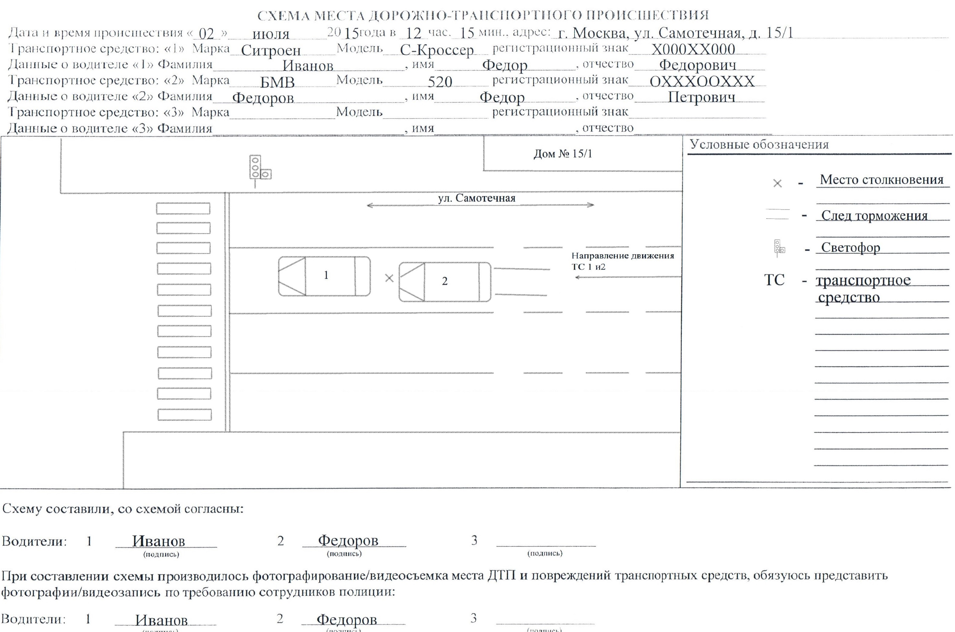 Как сообщил Главный государственный инспектор безопасности дорожного движения Москвы полковник полиции Виктор Васильевич Коваленко: «Управлением Госавтоинспекции по городу Москве подготовлены рекомендации по оформлению дорожно-транспортных происшествий и самостоятельному составлению схемы ДТП, а также образцы заполнения схемы ДТП. Мы рекомендуем водителям распечатать их, внимательно изучить и взять с собой в поездку.»