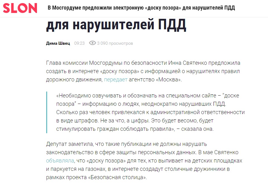 8. июля 2015 | Категория: ФАР в СМИУтром новостные порталы выдали следующую новость. Депутаты Мосгордумы предложили сделать доску позора для нарушителей ПДД. Виртуальную — специальный сайт в интернете. Как будто таких сайтов еще нет. Предложение поступило от.. кого бы вы думаете? Правильно, от людей настолько привыкших брать чужие идеи и проекты, выдавая их за свои, что они уже не видят в этом ничего плохого.