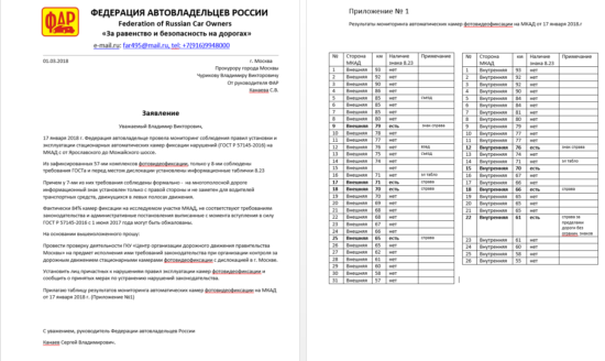 Еще в июне 2016 года, чиновники ЦОДД нас заверяли, что все стационарные камеры фотовидеофиксации нарушений ПДД оборудованы табличками 8.23 «Фотовидеофиксация».17 января 2018 г. Федерация автовладельцев России провела мониторинг соблюдения правил установки и эксплуатации стационарных автоматических камер фиксации нарушений (ГОСТ Р 57145-2016, Правила применения) на МКАД с от Ярославского до Можайского шоссе, а это почти почти треть автодороги.