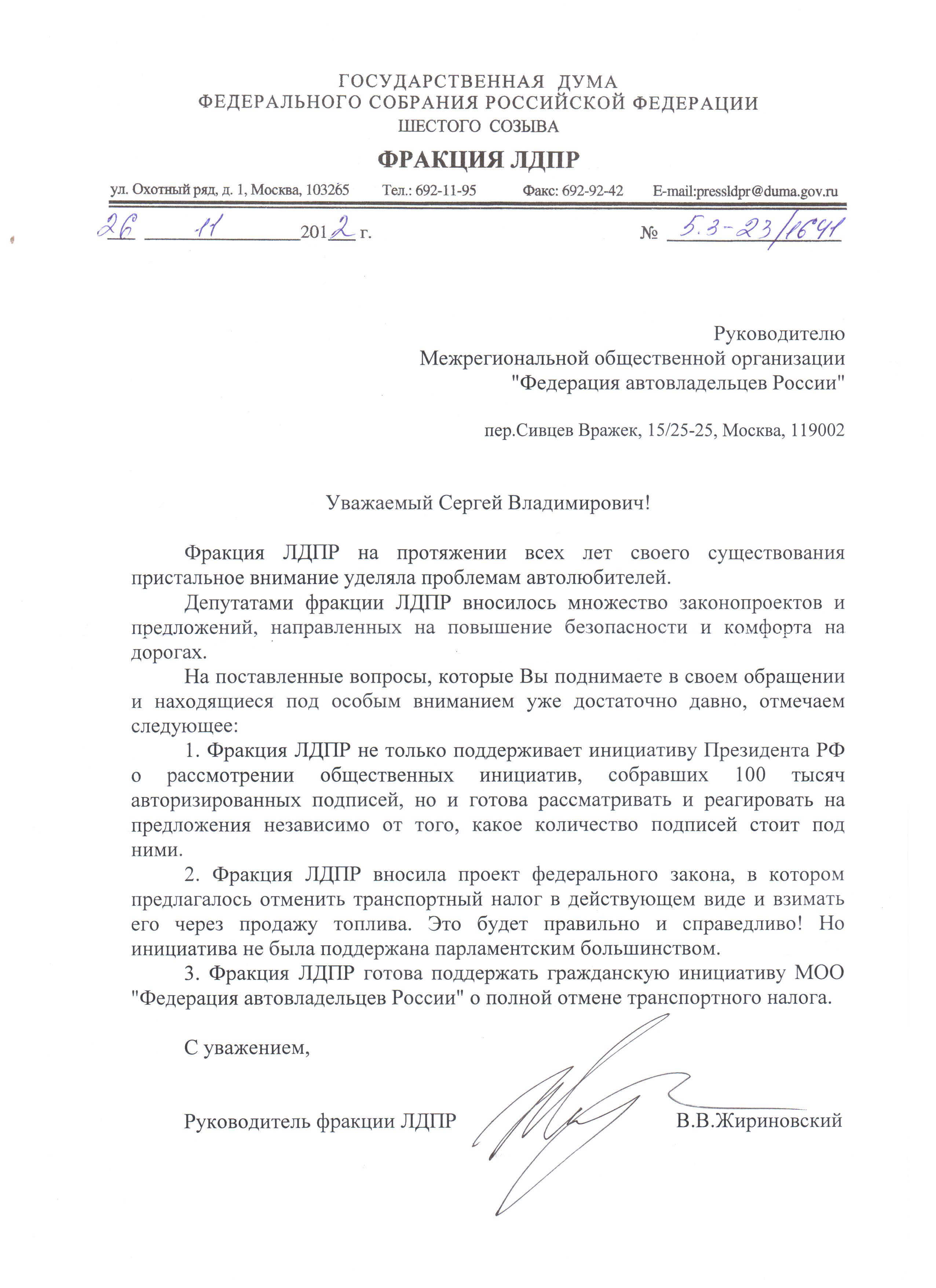 На обращение ФАР к лидерам политических партий и руководителям фракций в Госдуме