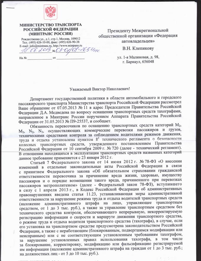 В мае Федерация автовладельцев направила письмо в правительство РФ с просьбой оценить адекватность требований и последствия реализации Приказа Минтранса № 36 и внести в него корректировки, делающие его исполнимым для всех добросовестных перевозчиков.