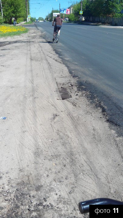 В таком состоянии дорога встретила 2 июня инспекционную поездку главы администрации города Александра Кузьмичева – инспектировал он начавшийся ремонт тротуаров