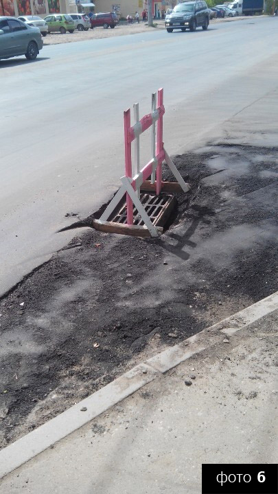 1 утопленный ливнеприемник подняли, но недостаточно укрепили и огородили — в результате он проломился.